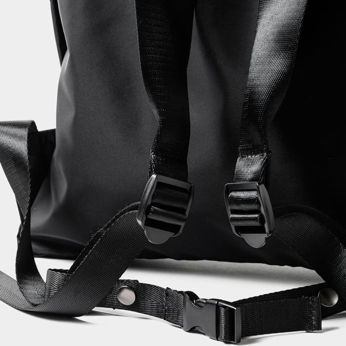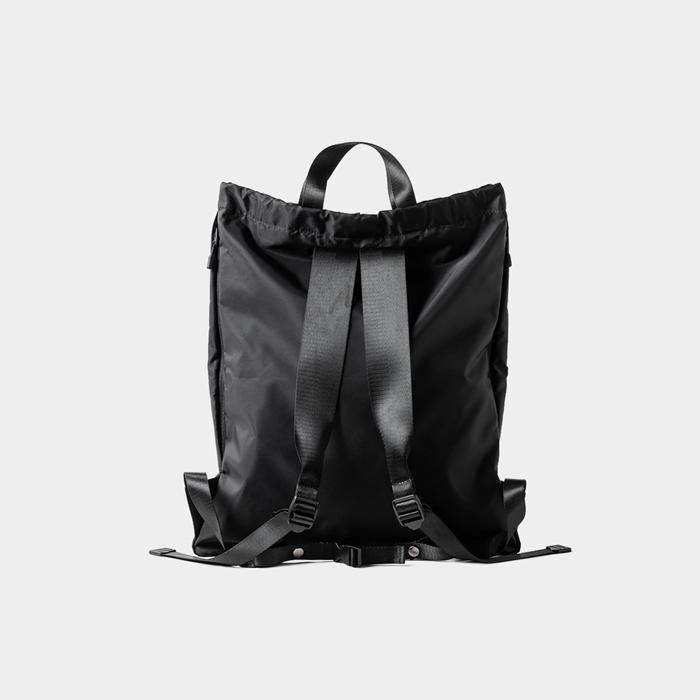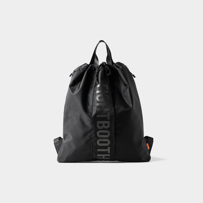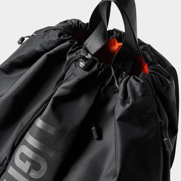 丈夫でしなやかなナイロンツイル生地を使用したナップサック。
