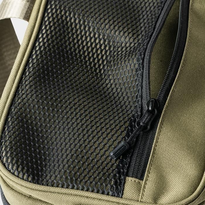 短めのハンドルと、取り外し可能なロングストラップを装備しているので、手で持っても肘や肩にかけての持ち運びも可能。