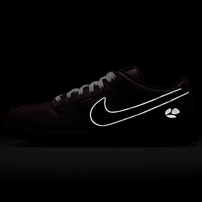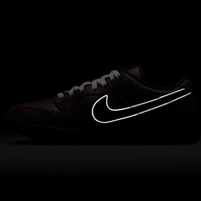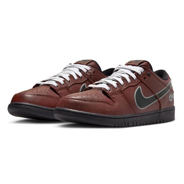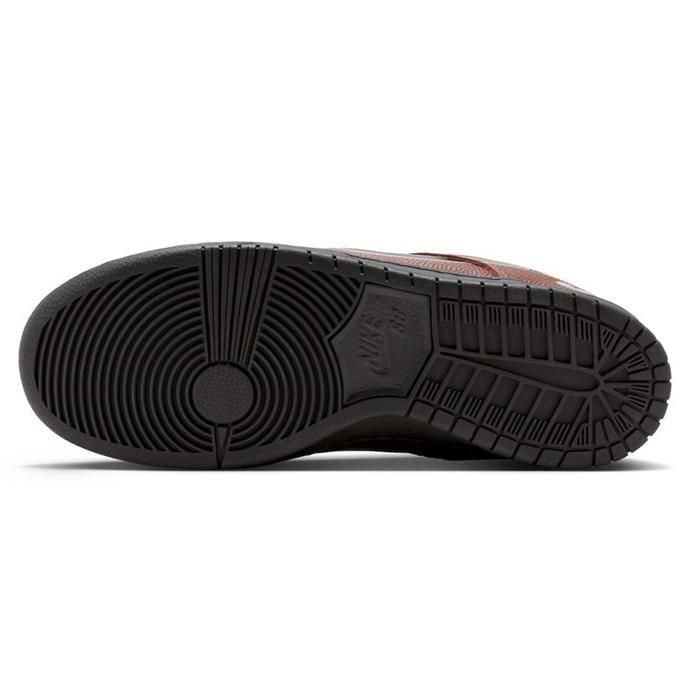 ブラウンのレザーのアッパーで、サイドには光沢のあるブラックとシルバーのスウッシュが配置されています。
