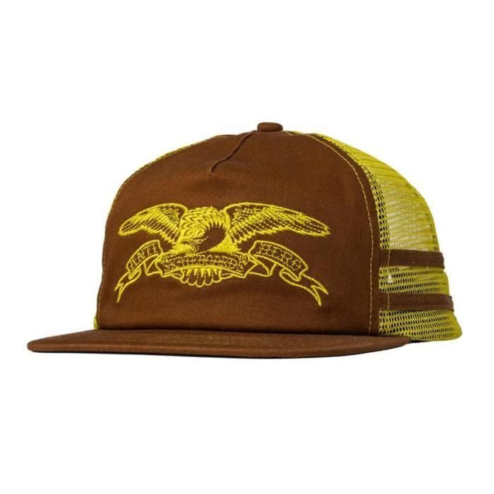 フロントパネル部分にカンパニーロゴ"BASIC EAGLE"を刺繍で施したスナップバックメッシュトラッカーキャップです。