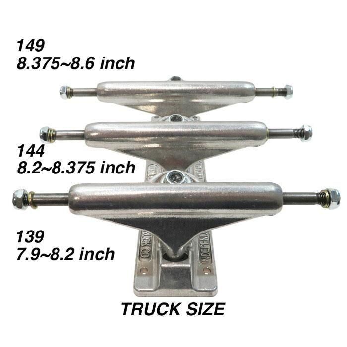 デッキのサイズが8インチの場合のトラックサイズは139、 デッキのサイズが8.25インチの場合はトラックサイズが144がデッキ幅に合います。