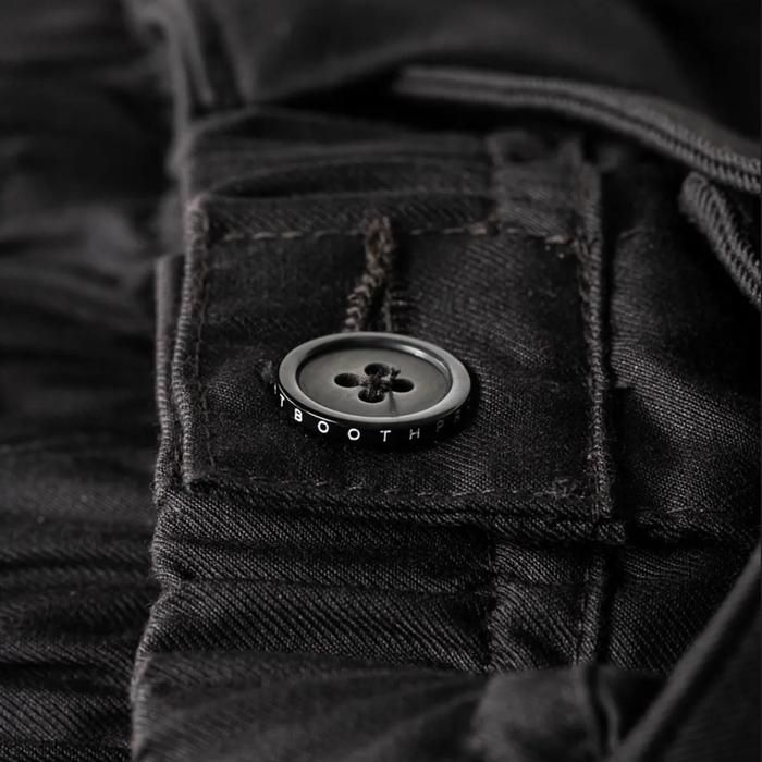 フロントにスラッシュポケット、サイドにはシームに沿ったファスナー付きシームポケット、バックには隠しマグネットボタン仕様のポケットを搭載。