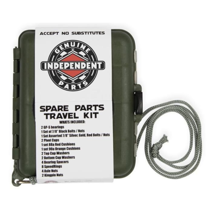 INDEPENDENT TRUCKのミリタリースタイルのタックルボックスに入れられたスペアキットです。