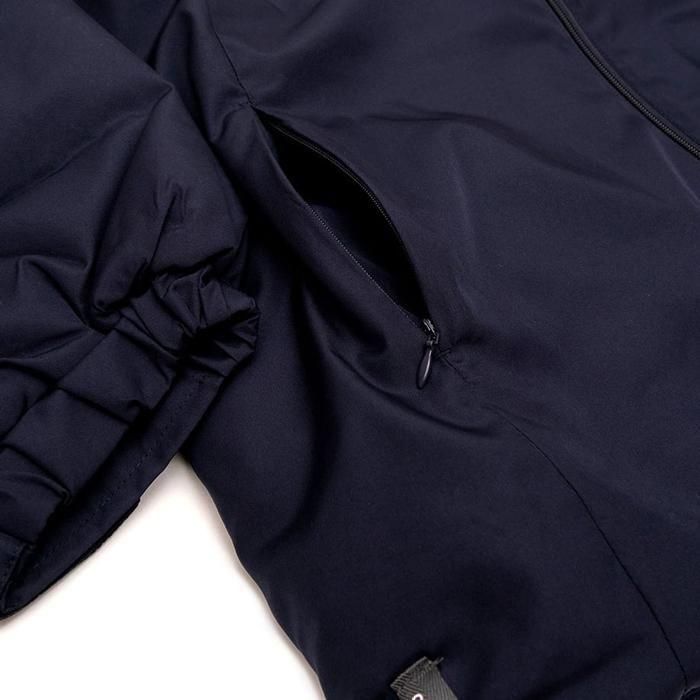 上下開閉ジップ、裾部分にドローコード、左胸にDRIP 刺繍、バックプリント、右裾にネームタグが付きます。
